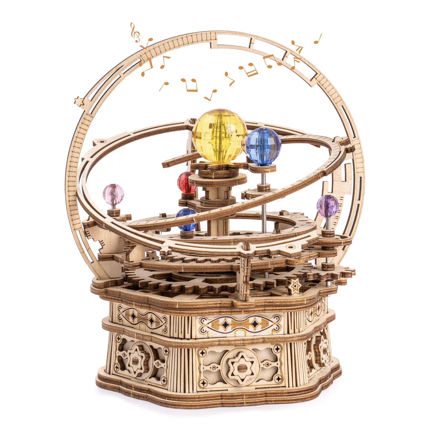 ROKR Rotating Starry Night Mechanical Music Box 3D Wooden Puzzle Assembly Model Building Kits Toys For Children Kids - AMK51
