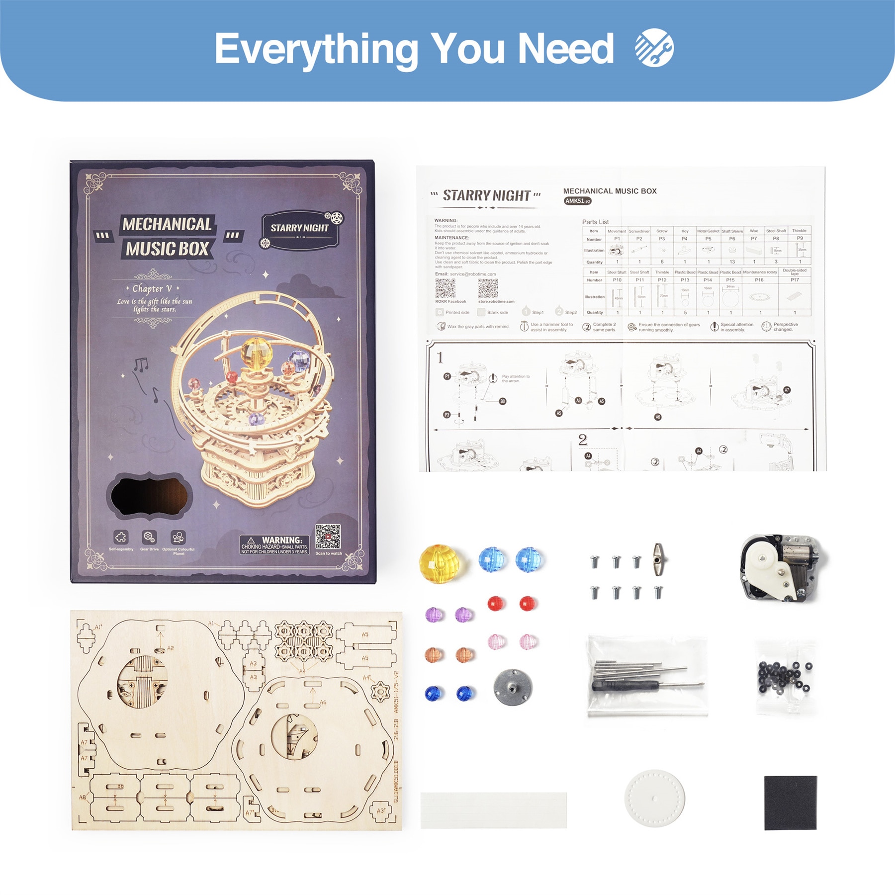ROKR Rotating Starry Night Mechanical Music Box 3D Wooden Puzzle Assembly Model Building Kits Toys for Children Kids - AMK51