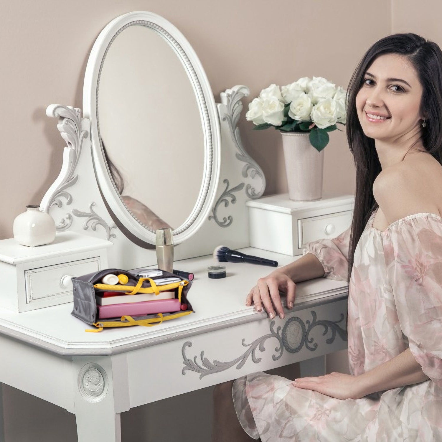 - **MULTIPLE USE*: The durable carrying handle can be carried by hand easily,and you can hang your Handbag Organizer from the durable handle or sit it flat on a countertop. It is ideal for travel,camping and trips.